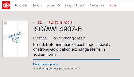 近日,中國華能牽頭的國際標準提案《塑料 離子交換樹脂 第6部分:鈉型陽離子交換樹脂交換容量測定方法》(ISO/AWI 4907-6)在國際標準化組織(ISO)成功立項。該標準是我國牽頭發布4項離子交換樹脂領域國際標準(ISO 4907-1:2023、ISO 4907-2:2023、ISO 4907-...